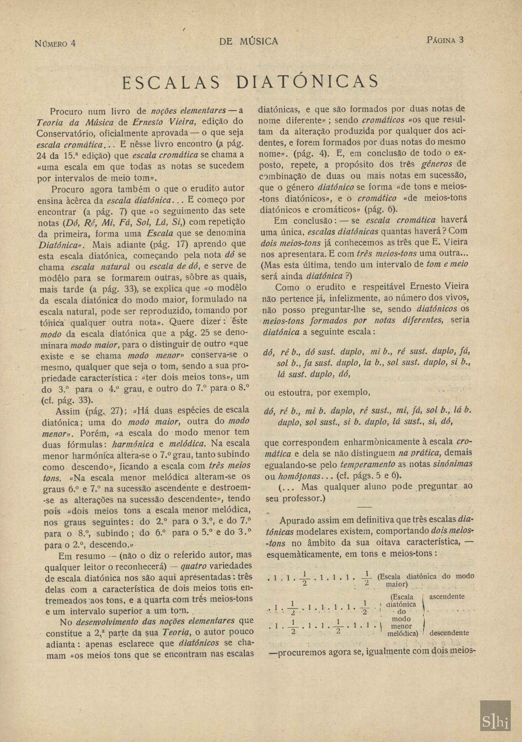 Exposição da teoria do autor sobre a constituição e número de possibilidades de escalas diatónicas.