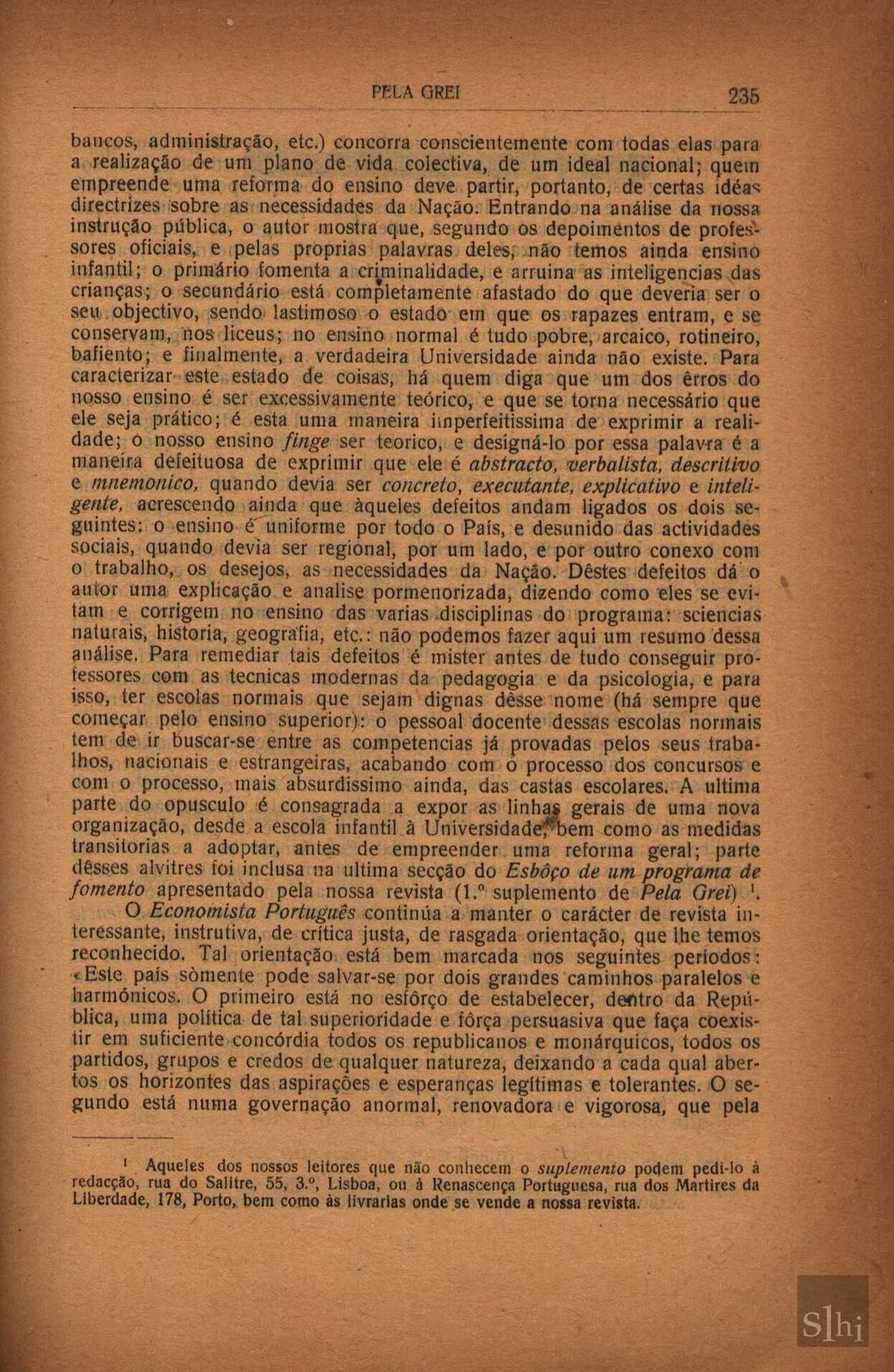 N.º 42 de Outubro de 1918 Physical descriptionpp. 223-236SummaryConjunto de textos sobre a actualidade político-social e reacções a textos anteriormente publicados em que se abordam diversos temas: Pós-guerra e o empobrecimento agrícola; Crítica à Igreja e defesa de bons valores estrangeiros; Opiniões sobre a nova geração; Proposta de transformação da sociedade por parte do partido trabalhista inglês.ConceptsSubjectsSingle Names RefCollective Names RefWorksGeographic Names