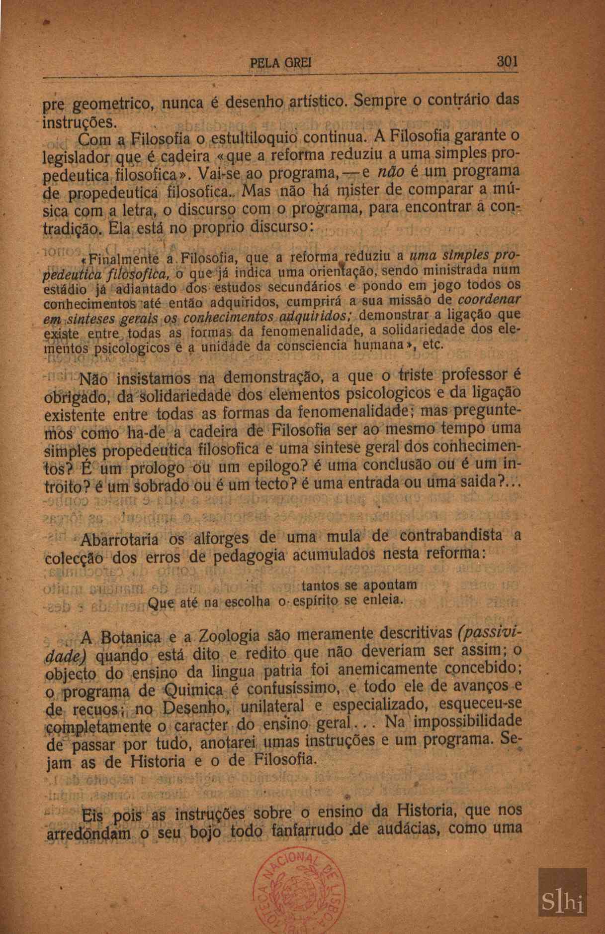 Considerações críticas sobre a reforma do ensino secundário, abordando o sucedido com as várias disciplinas.