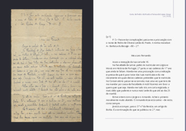 De Pedro do Prado a Fernando Lopes Graça, s/d [1930]Carta de Pedro do Prado a Fernando Lopes Graça com informação relativa ao processo de inscrição na Faculdade de Letras (Universidade de Lisboa) e à composição e edição do terceiro número da revista De Música. Imagem cedida pelo Museu da Música Portuguesa.Pedro do Prado, Museu da Música Portuguesa, CMC | MMP | Fundo FLG - cpp_074_022, 1930.