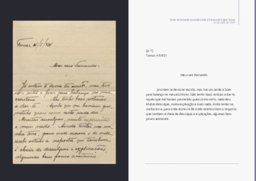 De Arnaldo Ascensão Sota a Fernando Lopes Graça, 4 de Maio de 1931Carta de Arnaldo Ascensão Sota para Fernando Lopes Graça em que, entre outros assuntos, menciona resposta a reacções a artigo de Lopes Graça em De Música. Imagem cedida pelo Museu da Música Portuguesa.Arnaldo Ascensão Sota, Museu da Música Portuguesa, CMC | MMP | Fundo FLG - cps_091_013, 4 de Maio de 1931.