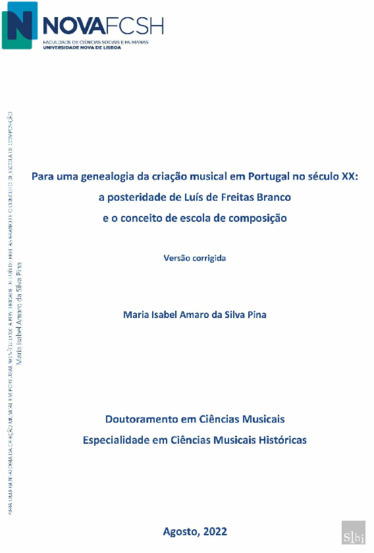 Para uma genealogia da criação musical em Portugal no século XX: a posterioridade de Luís de Freitas Branco e o conceito de escola de composiçãoA obra completa pode ser consultada em: http://hdl.handle.net/10362/148187.Isabel Pina, Dissertação de Doutoramento em Ciências Musicais, Universidade NOVA de Lisboa, 2022.