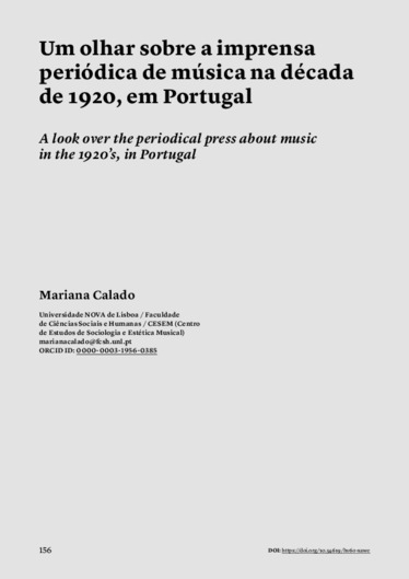 Um olhar sobre a imprensa periódica de música na década de 1920, em PortugalO artigo pode ser consultado em: https://doi.org/10.34619/hv6o-xawe.Mariana Calado in Para uma história do jornalismo em Portugal II, Carla Baptista, Jorge Pedro Sousa e Celiana Azevedo (coord.), Lisboa, Livros ICNOVA, pp. 156-171.